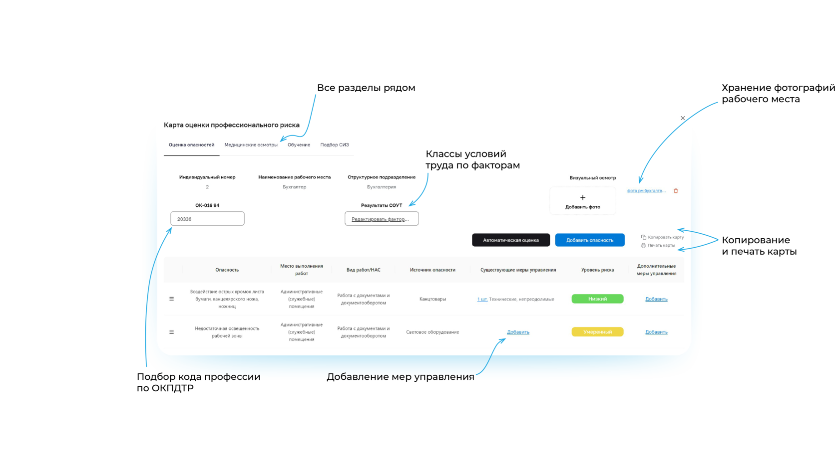 Отмечайте существующие на рабочих местах меры управления для корректировки уровня риска, а также выбирайте дополнительные меры по тем опасностям, для которых требуется их разработка